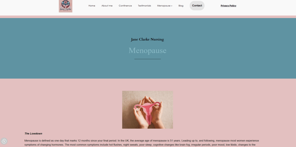 Leveraging WordPress and Elementor, I built a responsive, mobile‑friendly site that reflects Jane’s caring, authentic approach. And we made sure the overall design feels accessible and welcoming, matching her emphasis on practical, empowering resources for people living with incontinence along with providing information and awareness on menopause provided with individual coaching.